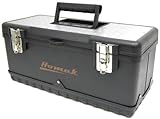 BLACK PAINTED STEEL TOOLBOXSteel body. Rugged plastic reinforced top and bottom. Durable plastic tray.