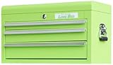 - Heavy duty lime green metal box with 150-pound rated ball bearing slides