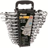 22 - Pc. SAE / Metric Combo Wrench Set. Precision Wrenches offering sure leverage on tough nuts and bolts. Strong-made with polished chrome vanadium steel. It's a complete Set that makes sure you always have the right size at hand. You get these SAE: 1/4", 5/16", 3/8", 7/16" 1/2", 9/16", 5/8", 11/16" 3/4", 13/16" and 7/8". And these Metric: 9 mm, 10 mm, 11 mm, 12 mm, 13 mm, 14 mm, 15 mm, 16 mm, 17 mm, 18 mm and 19 mm. And they all come in a durable plastic rack that stores them, safe and organiz